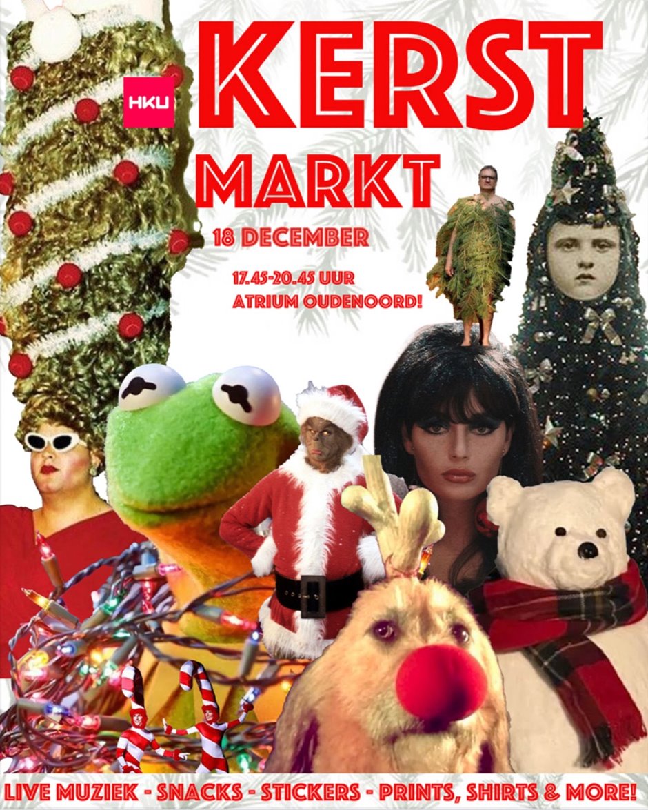 Op donderdag 18 December is het weer zover: de HKU Kerstmarkt. Geniet van een avond live muziek en een hele hoop kraampjes met diverse creaties die verkrijgbaar zijn zoals: zines, posters, stickers, buttons, t-shirts, keramiek, sieraden en nog veel meer. Dus dit wil je niet missen!