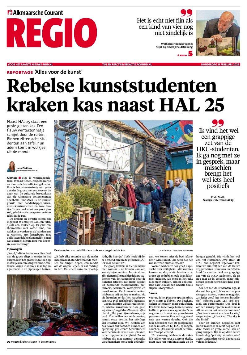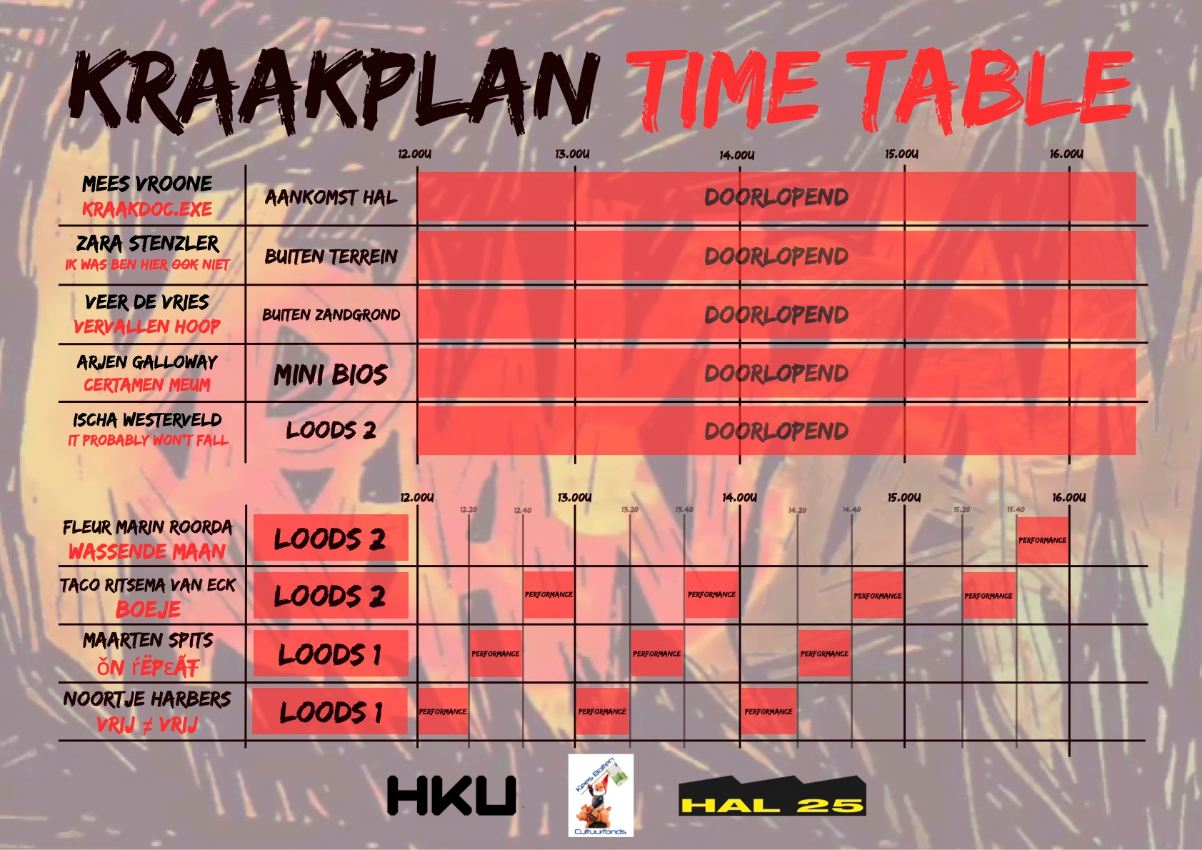 Makers Interactive Performance Design 3 Fleur Marin Roorda, Ischa Westerveld, Mees Vroone, Veer de Vries Theatre Design 3 Noortje Harbers Docent Theater 3 Taco Ritsema van Eck, Arjen Galloway Music & Technology 3 Maarten Spits Writing for Performance 3 Zara Stenzler, Firat Doğan Met dank aan HKU Theater, HAL25, Ervin Skelic, Kim Vogels, Judith Hofland en Maxime Vandommele Foto's Hal25