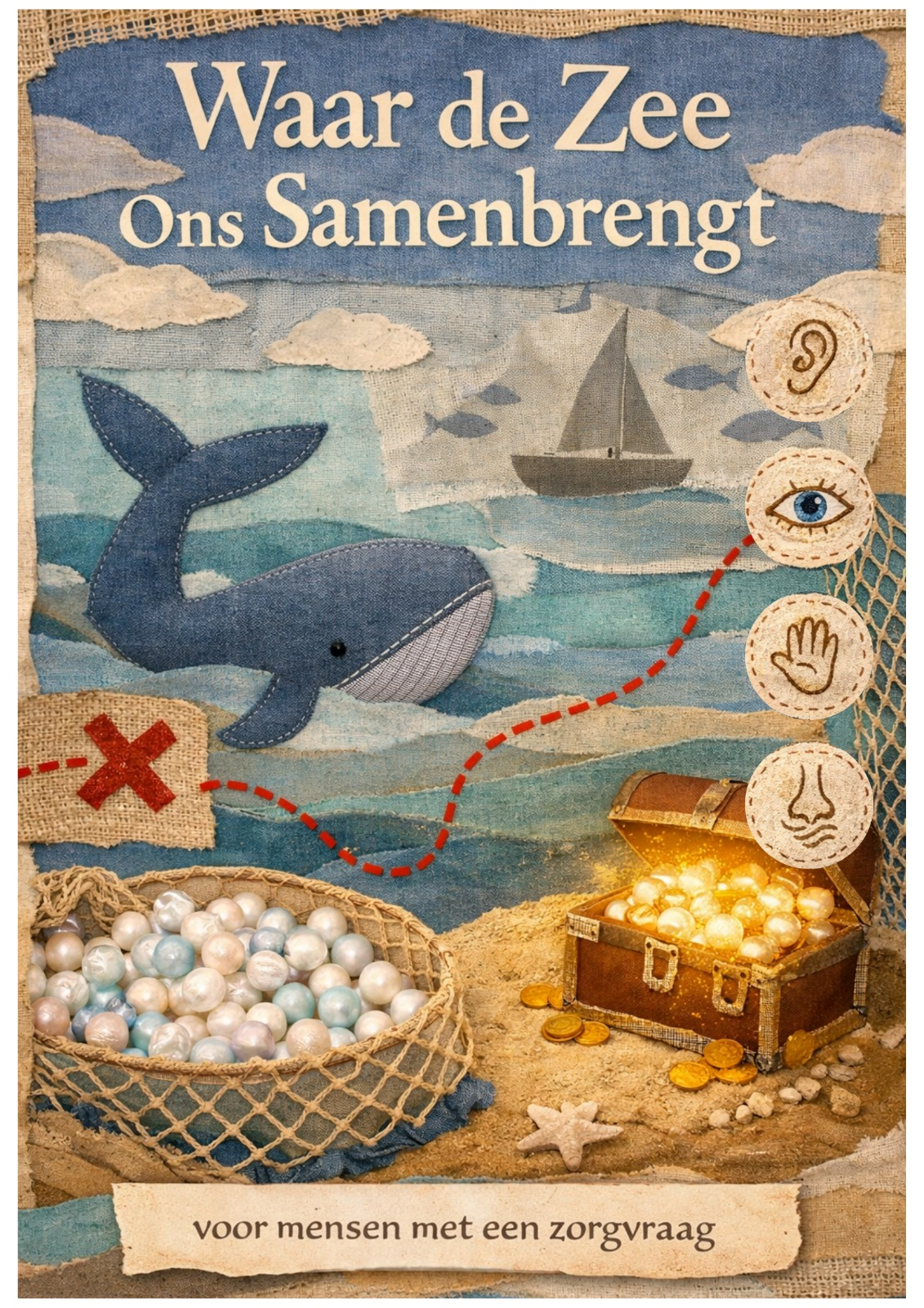 Waar de zee ons samenbrengt is zintuiglijke belevingstheater voor mensen met een zorgvraag. De voorstelling werkt zonder taal: de nadruk ligt op contact, vertraging en plezier.