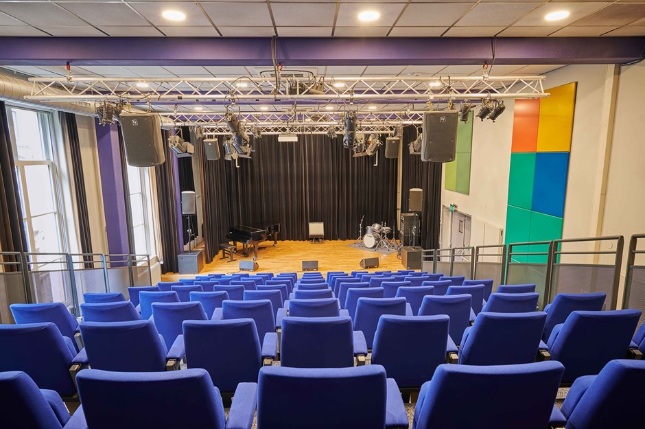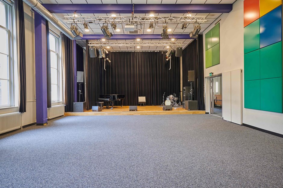 De Kleine Zaal (K1.08) is te vinden op de eerste verdieping van het Gebouw voor Kunsten & Wetenschappen (Mariaplaats 27, Utrecht) en is geschikt voor lezingen, workshops en concerten met versterkt geluid.HKU volgt m.b.t. COVID-19 ook voor zaalverhuur de op dat moment geldende maatregelen, neem voor meer informatie hierover contact op via verhuringen.mariaplaats@hku.nl