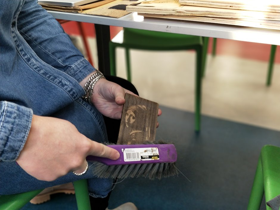 In Makerspace, you can work with a laser cutter, cutting out your design or experimenting. Our students recently tried to make popcorn by putting maize under the laser cutter. Another student discovered you can bend wood using a specific technique. Let yourself be surprised by all the many possibilities!