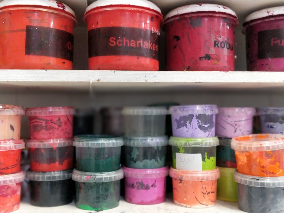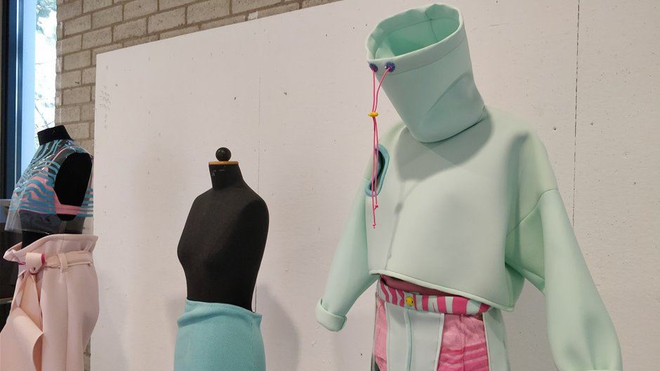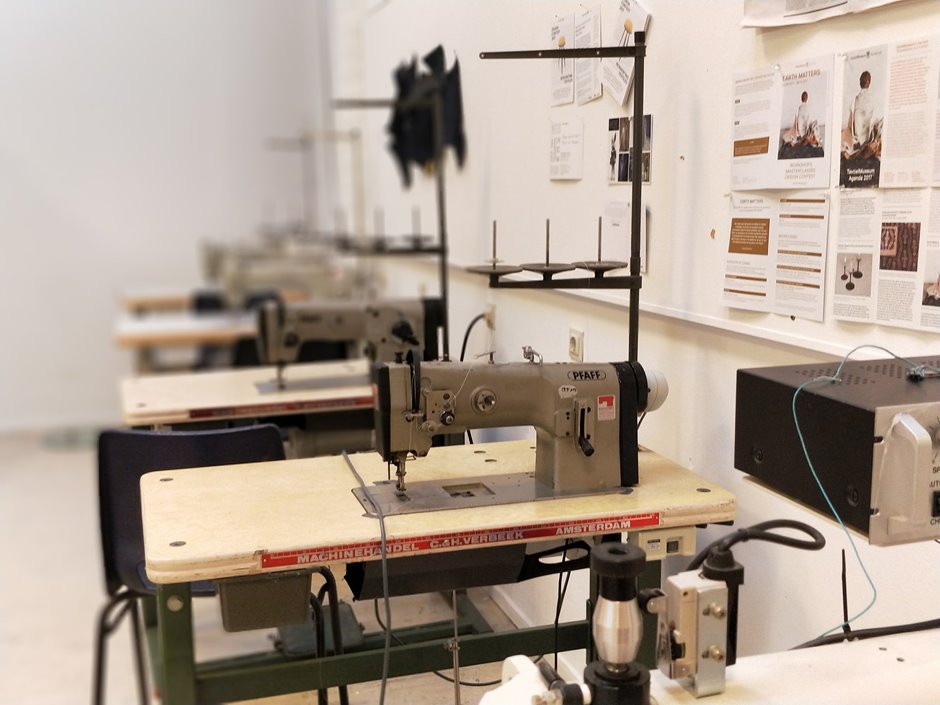 This workspace at location IBB-laan is divided in two parts. In the print area you can print and/or dye your material. In the construction area you can make combinations of textiles and other flexible materials.