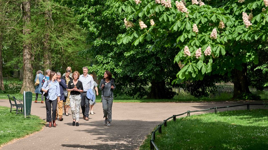 One of the methods Esther employs is interviewing first-year students and lecturers in Arts and Economics while walking. Three questions form the core of these conversations. First, she asks participants to bring something that reminds them of a specific art experience. This is accompanied by the question: “Tell me about what you brought and which particular art experience it relates to.” The second question is: “Who are you as an art lover? What do you do, and how do you like to do it?” And the third: “What significance do those art experiences hold in your life?” In addition to these interviews, Esther collects material from students walking in pairs as part of their study activities. Participants keep journals of art experiences and engage in reflective conversations with guidance from lecturers. She also experiments with so-called ‘existential wonderlabs,’ where themes such as ‘connection’ are explored in greater depth.