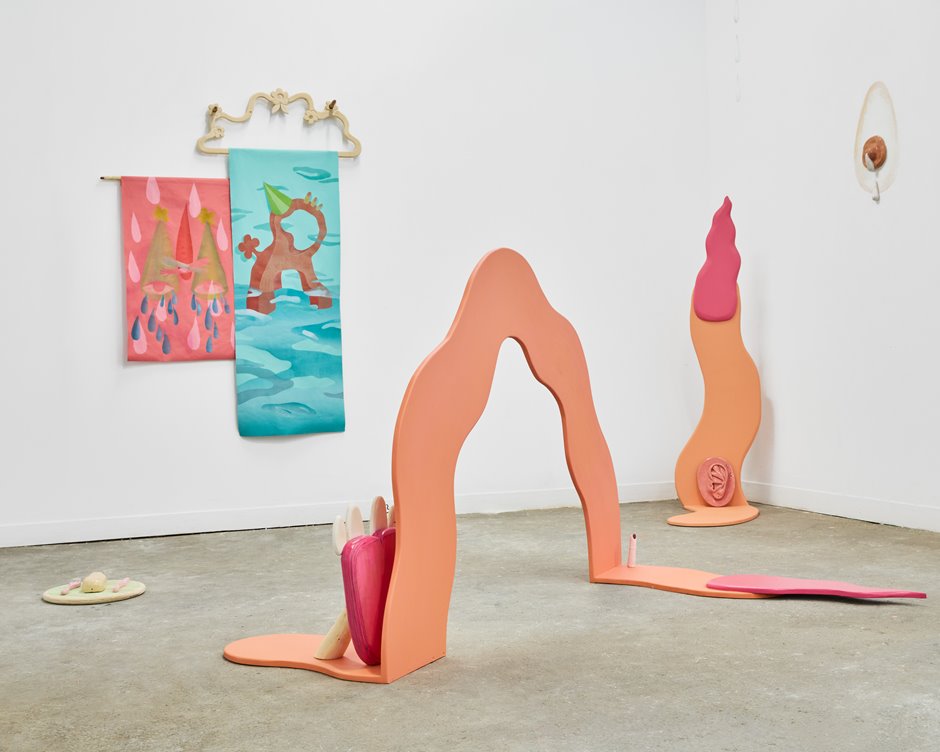 I see my graduation work as an exhibition in which all the pieces create a coherent whole, yet can also be viewed in separation. Creations made of ceramic, wood and textiles, next to drawings on paper, and stencil prints on fabrics. At first sight, it seems like a colourful and loving world, but nothing is what it seems. My work contains symbols that refer to the autobiographical stories about my experience as a woman in society. My graduation work is meant to confront the stereotypical images and taboos about women in society. But above all, I want to celebrate female strength.