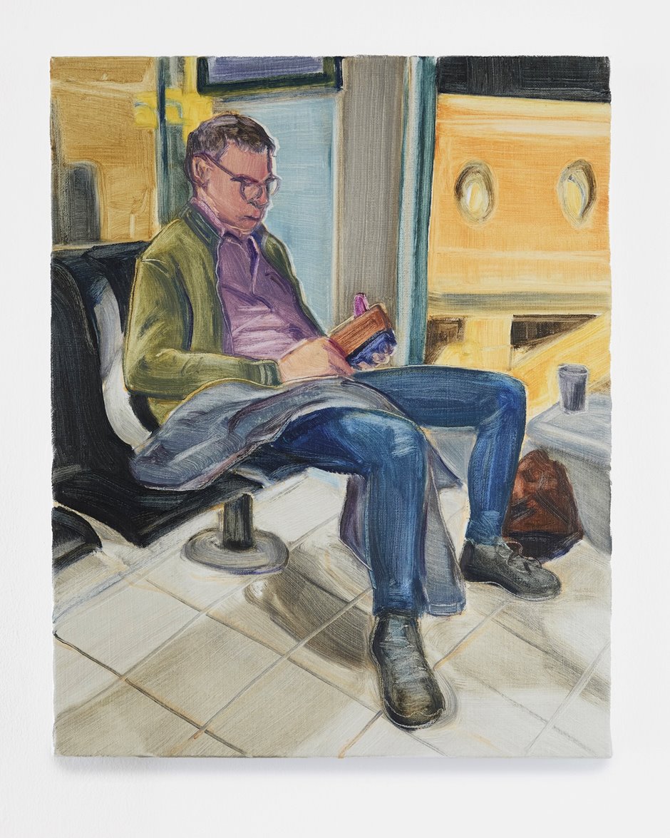 We all have to wait in public space sometimes. It might be a few minutes, or much longer. Sam Reekers became fascinated by this frequent activity, in which we are travelling yet not moving. In his detailed oil on panel paintings, he depicts the mind state that comes with having to wait. He portrays people as they are: bored, sleepy, or fully satisfied, without judging those he portrays or the act of waiting itself. Most of his paintings are based on photos he took at train stations. Together, they capture moments in life that are often overlooked.