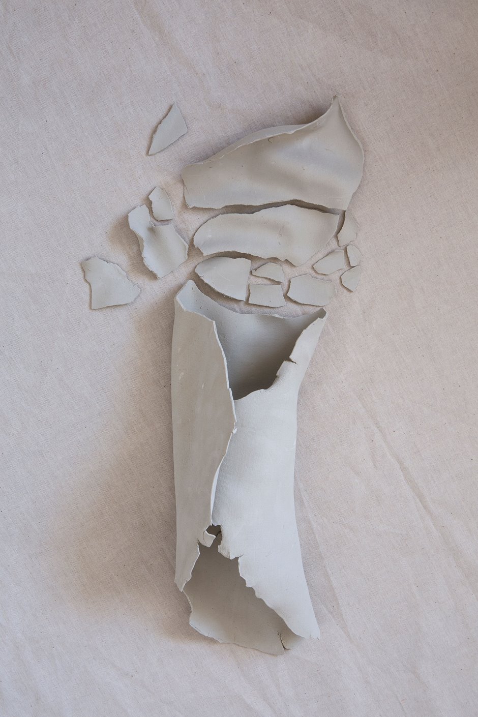 A memorial of something that never happened is een zoektocht naar een verbeelding van rouw. Het werk bestaat uit verschillende manieren van afdrukken. Zo maak ik ruimtelijke afdrukken van handen en afdrukken van de laatste rustplaats. Ik heb onderzoek gedaan naar westerse begrafenisrituelen en richt mij op de transformatie die een nabestaande doormaakt, na het verlies van een dierbare. Ik werk met verschillende materialen zoals textiel, klei en gips en vanuit het gevoel dat de westerse begrafenisrituelen niet aansluiten bij waar ik behoefte aan heb tijdens het afscheidnemen. De materialen zijn te bewerken in verschillende vormen, texturen en kleuren die mij helpen te verbeelden van mijn gevoel bij afscheid nemen.