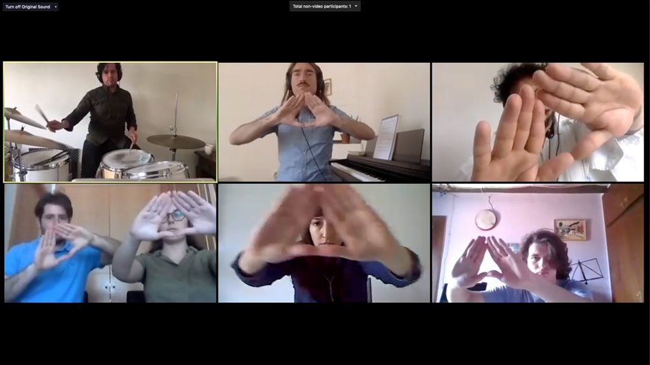 Time, duration, the notion of love, and the difficulties of practicing care within collective work came together in a live web stream performance hosted by Herrington on October 6, 2020. The event began with a screening of the conditions of togetherness film, while the second part of the live stream presented a performance by Hache Collective, in which the group performed the work they co-developed with Herrington.