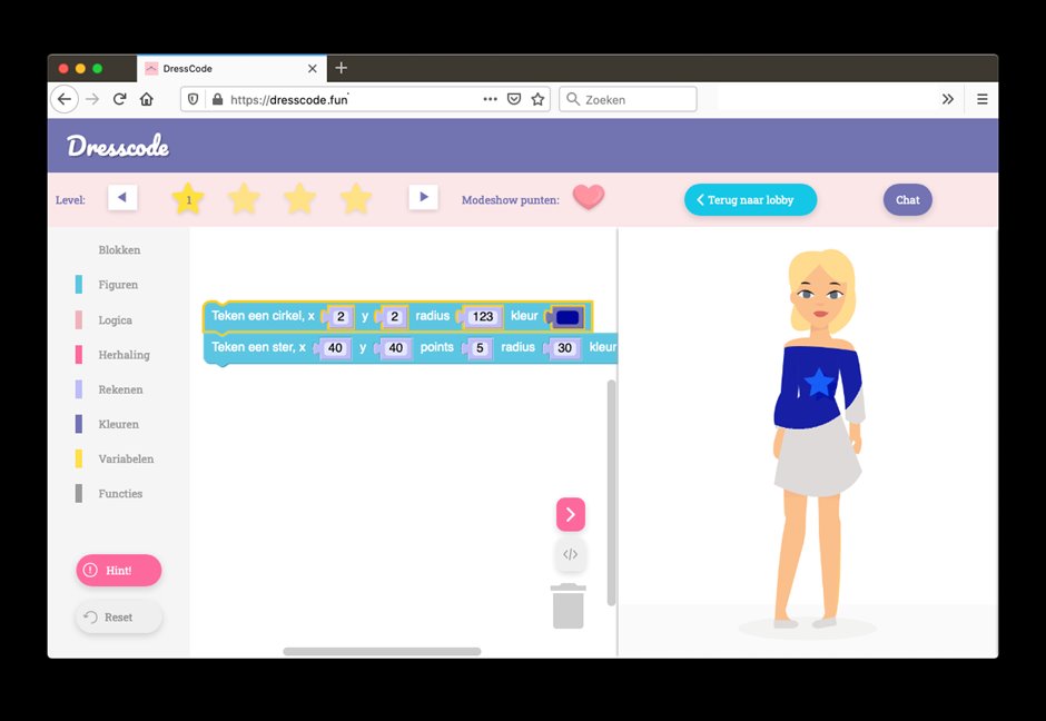 Dresscode - een game om meisjes nieuwsgierig te maken naar programmeren