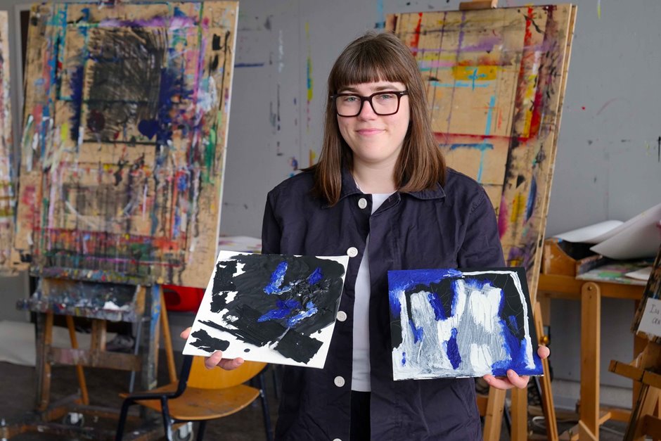 ‘Het meest waardevolle aan de opleiding vind ik dat je op een andere manier leert kijken en nadenken. Dat is niet meteen te zien in het werk dat iemand maakt, maar zit in jezelf en is iets wat alleen jij kan ervaren. Je leert loskomen van een mening of iets mooi of lelijk is. Tijdens feedbackmomenten ga je met elkaar in gesprek over de gedachte achter het werk: wat vertelt het ons? Zo leer je reflecteren op je werk, op jezelf en je leert omgaan met kritiek. Dat is ook buiten je leven als beeldmaker belangrijk. Natuurlijk geef je elkaar wel eens complimentjes als je het een vet beeld vindt. Maar dat is niet waar het uiteindelijk om gaat.’