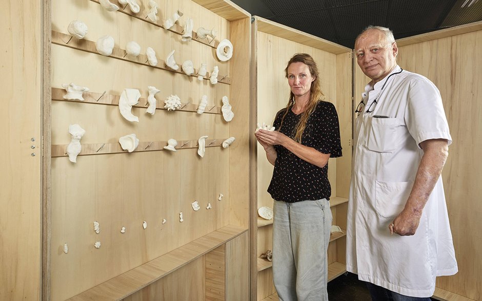 Op dit vlak van zorg en kunst beweegt kunstenaar Nieke Koek zich. Het vermogen of onvermogen van het menselijk lichaam is een inspiratiebron voor haar werk en artistieke methodes. Zo is ze bedenker van het MeeMaakAtelier, een mobiele werkplaats in het Amsterdam Universitair Medisch Centrum (UMC) waarin lichamelijke ervaringen, zoals ziekte, pijn, herstel of kwetsbaarheid, worden vertaald naar driedimensionale vormen in klei, die ook weer kunnen worden meegenomen in het gesprek met de arts. Nieke: “We zijn vaak angstig voor ziekte, pijn, dood en vergankelijkheid. Toch maakt het voor velen deel uit van het dagelijks leven. Door er via een uitingsvorm anders dan taal een gesprek over te hebben, er expressie aan te geven, wordt het speels en laagdrempelig. Dat doet iets met een patiënt, maar ook met een arts of andere zorgverlener. Het opent een poort voorbij de angst, om nieuwsgierig te zijn, om nieuwe vragen te stellen.”