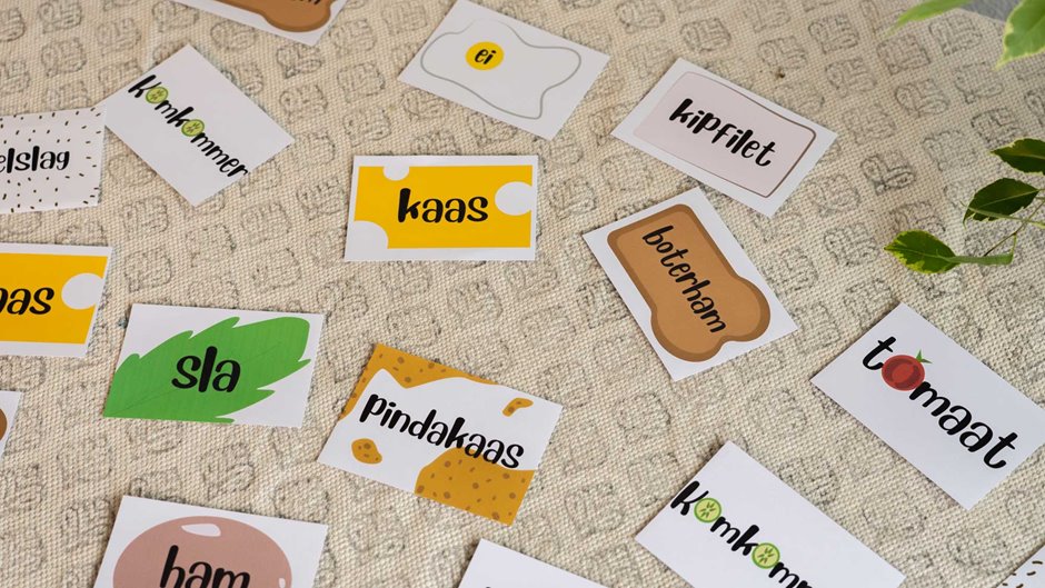 Felice mocht deze werkwijze al meteen in het eerste studiejaar praktijk brengen. De Werkplaats in Bilthoven wilde een lesreeks rondom het thema ‘bewustwording’ opzetten en schakelde hierbij de hulp van de DCI-studenten in. Felice: ‘Je onderzoekt dan eerst wat je eigen drijfveer is of voor welk probleem je een oplossing ziet. We kozen voor eten en dan specifiek de watervoetafdruk van broodbeleg. Na gesprekken met de school bedachten we de ‘Bammetjesbox’, een interactief kaartspel dat de watervoetafdruk van je beleg inzichtelijk maakt. Al spelenderwijs ontdekken leerlingen dat er meer water nodig is voor sla op hun boterham dan wanneer ze kiezen voor smeerkaas. Dankzij het spel kon de school hierover weer verder in gesprek met de leerlingen.’