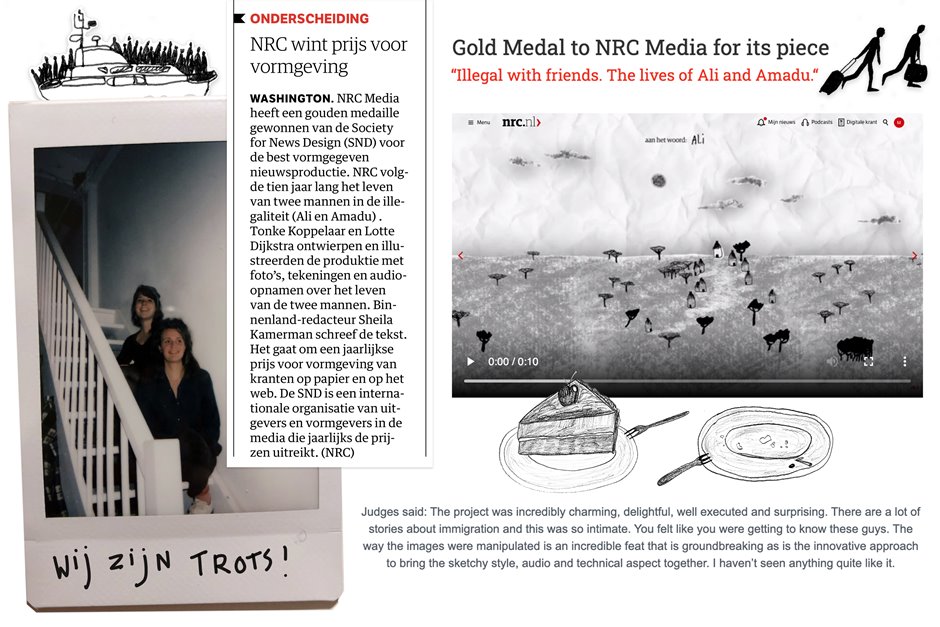 Koppelaar: “We wisten het pas toen we de prijs hadden gewonnen, haha!” Het voelt een beetje onwerkelijk, maar blij en trots zijn ze wel: “We winnen gewoon een internationale grote prijs! Er waren meer dan 1700 inzendingen en we staan in het rijtje naast New York Times. Het is ook niet echt normaal dat een Nederlandse inzending de prijs wint, meestal is het een Amerikaanse winnaar.”