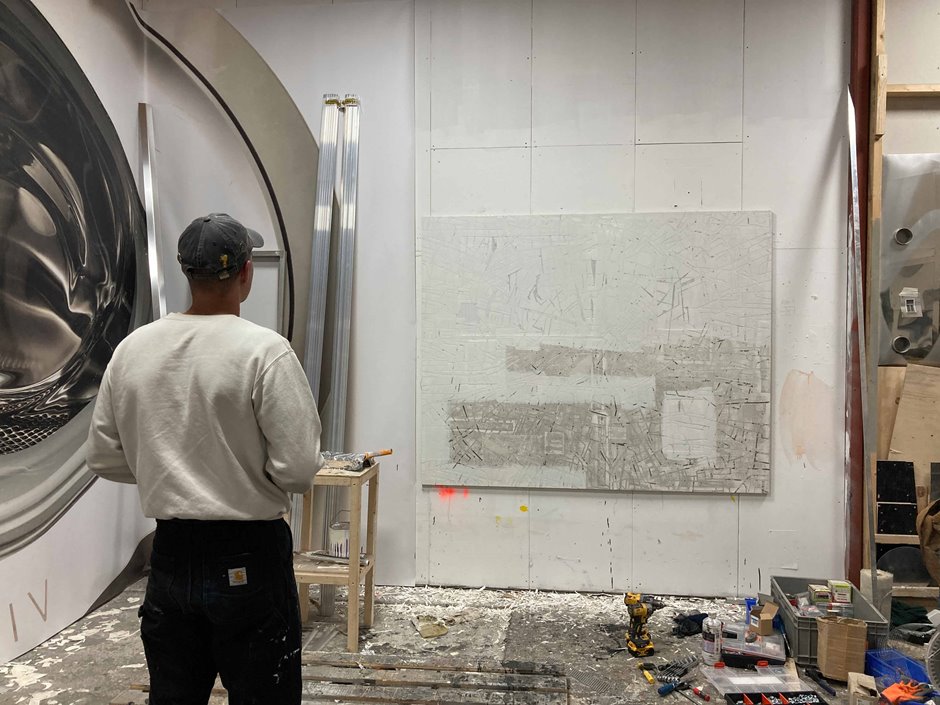 Ricardo van Eyk zit ontspannen rokend op een oude leren bank in zijn werkruimte aan de Utrechtse Nijverheidsweg. Schijn bedriegt echter. Binnen twee weken opent een overzichtstentoonstelling van hem in Hengelo (Wolvecampprijs) en op 2 december moet ‘alles’ af zijn voor de expositie in Centraal Museum (met collega en HKU-alumna Janine van Oene). ‘Het is een hectische tijd. Voor Hengelo kan ik een soort best of uit bestaand werk samenstellen, maar voor Centraal Museum moet ik echt nog veel doen. Ik werk de laatste tijd meer ruimtelijk en ben voor het Centraal Museum bezig met iets wat is geënt op de verbouwing van Hoog Catharijne. Ken je die panelen voor de gesloten winkels, met die typische digitale tekeningen van hoe het er na de renovatie zal uitzien? De bedoelde aantrekkelijkheid van zo'n beeld moet het bouwproces onttrekken aan de blik van de voorbijganger... wat juist de menselijke nieuwsgierigheid aanwakkert naar wat er achter de schermen gebeurt. En in mijn geval heeft het ook inspiratie gegeven voor nieuw, meer ruimtelijk werk.’