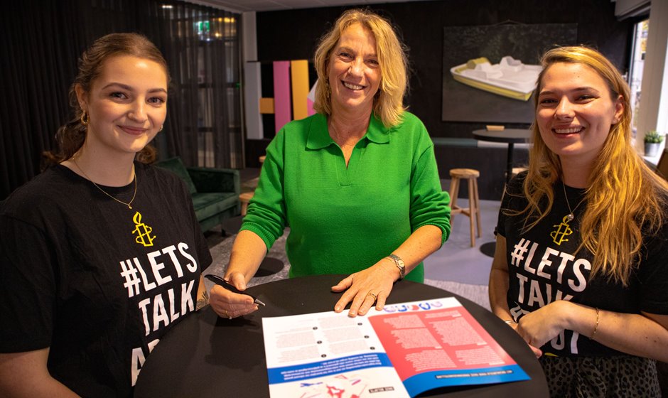 Jumelet: ‘Het is een ongelooflijk belangrijk onderwerp. Wij staan vierkant achter dit manifest van Amnesty en steunen de uitwerking in de praktijk. Met elkaar maken wij een vuist tegen grensoverschrijdend gedrag en hebben wij oog voor goede signalering en hulpverlening.’