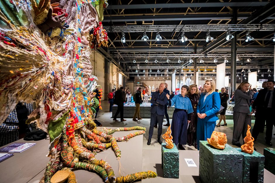 Koningin Máxima bezoekt expositie HKU op Dutch Design Week