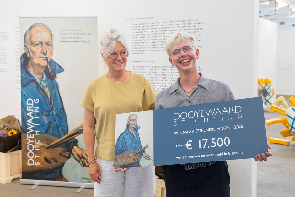 Sam Reekers heeft het jaarlijks uitgereikte Dooyewaard Stipendium ter waarde van 15.000 euro op zijn naam geschreven. Reekers, kersvers afgestudeerd bij Fine Art, krijgt daarmee ook de kans een jaar gratis te wonen en werken in het atelier van de Dooyewaard Stichting in Blaricum.