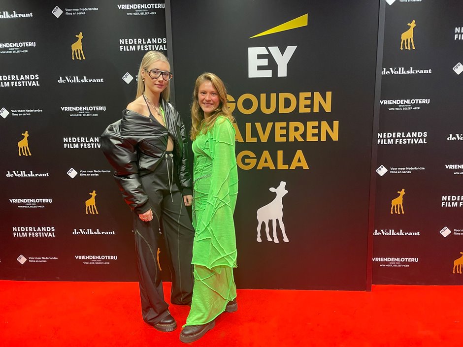 De jurk van Emma Pastoor is afkomstig uit de collectie ‘The Unknown’, waarmee ze afgelopen zomer afstudeerde. Tijdens de opening van de afstudeerexpositie kreeg het ontwerp ook al een bijzondere rol, de jurk werd toen gedragen door Marinda Verhoeven, directeur HKU Design. Dat bleef bij wethouder Eva Oosters niet onopgemerkt, zo vertelt Pastoor: ‘Marinda nam achteraf contact met mij op, en vertelde dat de wethouder interesse had om de jurk te dragen tijdens het Gouden Kalveren Gala. Zo’n kans krijg je niet snel, dus daar ben ik uiteraard op ingegaan. Het is voor mij voor het eerst dat mijn werk op deze manier getoond wordt, super spannend maar vooral erg leuk.’
