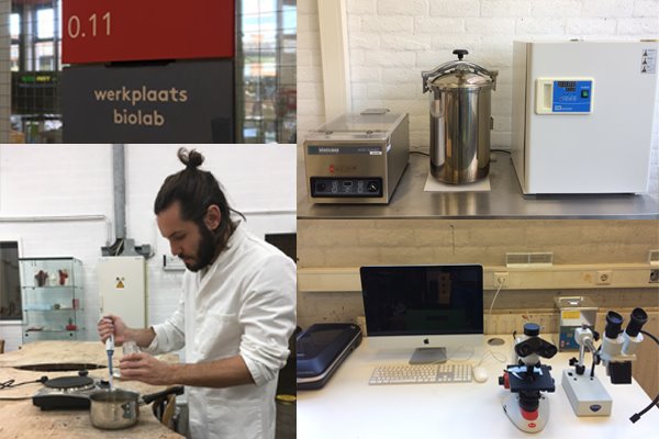 In het Biolab kun je veilig experimenteren met levende micro-organismen, zoals het laten groeien van schimmels, algen, bacteriƫn, kombucha, slijmzwam en mycelium voor je ontwerpen.